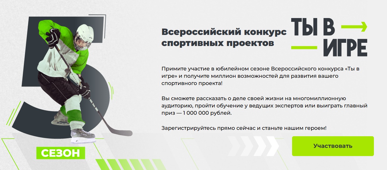 Прием заявок для участия в пятом сезоне Всероссийского конкурса спортивных проектов «Ты в игре» продлится до 14 марта 2025 года.